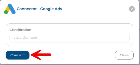 You are going to select the Google Ads Connector, and the pop-up box will appear. Select 'Connect.'