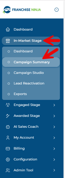 Step 1: Go to the In-Market Stage Menu and click the Campaign Summary