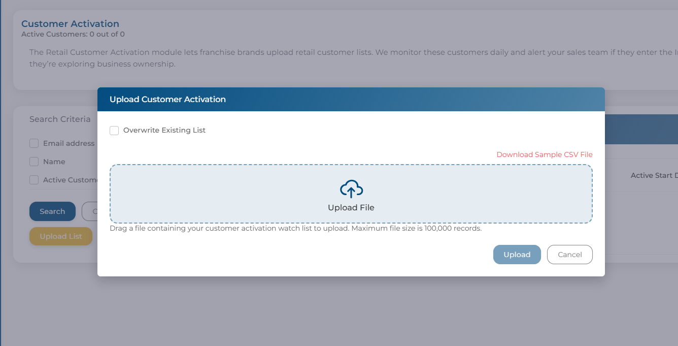 Yes, you can upload individual customers. Simply follow these steps: 1. Open the In-Market Stage drop-down 2. Click on Customer Activation 3. Click Actions 4. Click Add Customer 5. Enter the customers email, first name and last name. 6. Click Add ...