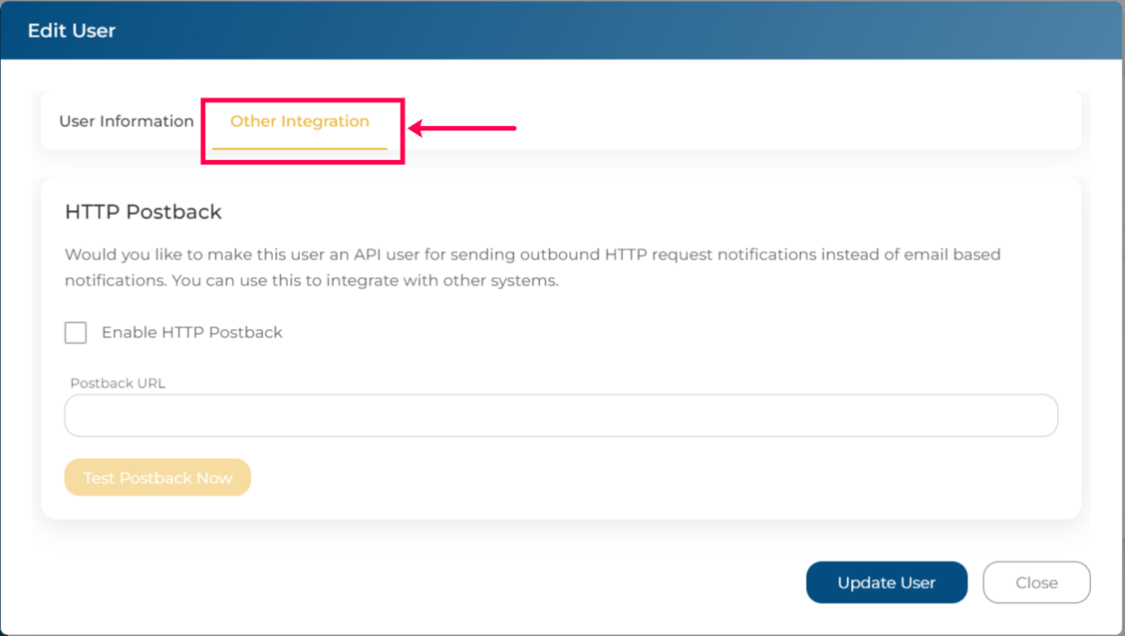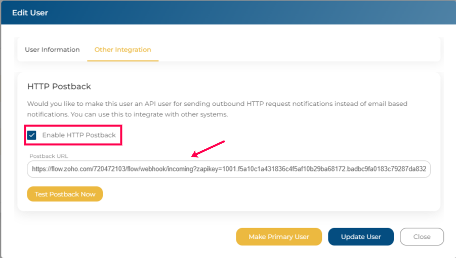 Enable the Webhook by clicking the checkbox and inserting the postback URL