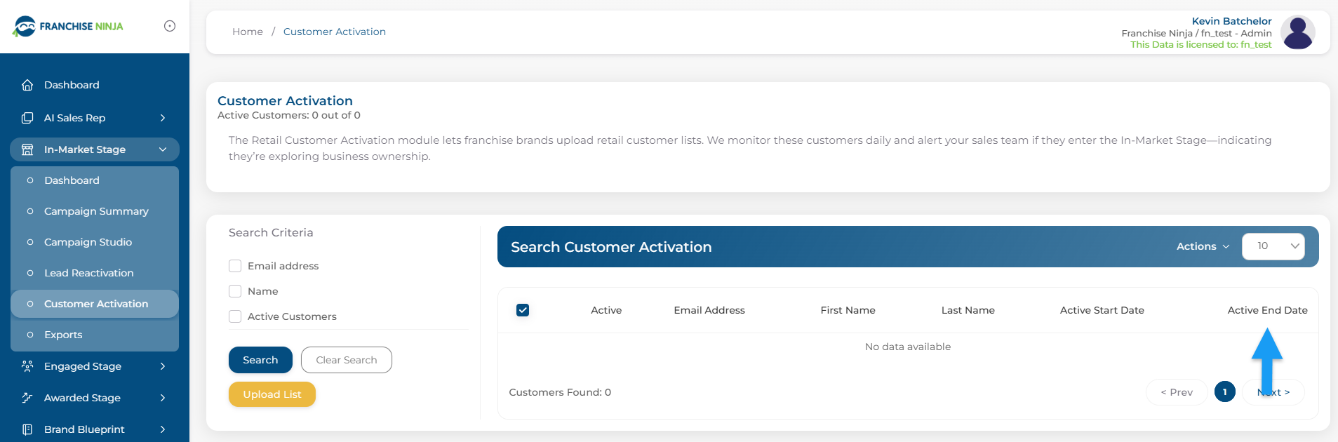 Customer Activation can be found in the In-Market Stage in the Franchise Ninja platform. This module's full name is Retail Customer Activation. This module lets franchise brands upload retail customer lists to the platform. We will then monitor these ...